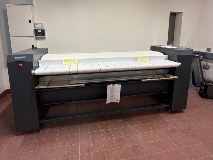 This is a monster ironing machine supplied by Miele Professional for a private residence nestled in the rolling Dorset countryside. This PRI421 Rotary ironer is electrically heated, with spring padding for optimum finishing results and is the premium machine in the collection.